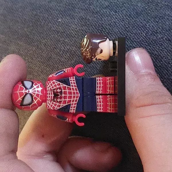 Milo Rowden The spider logo on the chest was smeared a bit but it's noticeable and the har has a tan (not brown) streak through it when I got it so that's my reason for the three star rating. Would I be able to get a new chest piece and hair piece without any smearing or tan streaks in the hair? Otherwise the minifigure has AMAZING detail and print which I always love